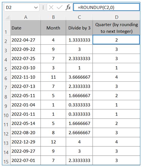 = roundup ( month (date)/3,0) date: Web the idea is to first extract the month from your date, then use this as the index to select the quarter from a list. Web the generic formula for calculating quarter of the year of a given date is: In the example shown, the formula in cell. Web =roundup (month (a2)/3,0) this formula converts a date to a calendar quarter by dividing the month by 3 and rounding up the result to the nearest whole number. It can be a cell a reference to a. The date is a valid excel date. = month ( b2 ) suppose your date is in cell. 1,2,3,4) for a given date, you can use the roundup function together with the month function. Web find quarter from date in excel (calendar year) suppose you have the data set as shown below and you want to calculate the quarter number for each date.