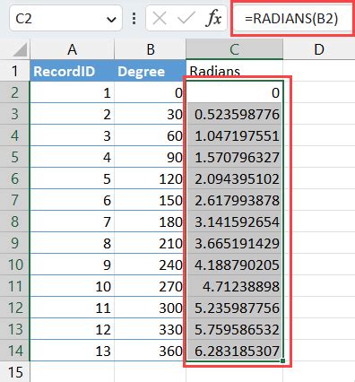 Convert Degree To Radian In Excel. Radians = degrees x (π/180) where π (pi) is a mathematical constant representing the ratio of a circle's circumference to its diameter,. Web using a function specifically built to convert radians to degrees;