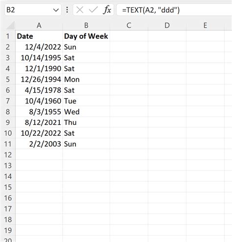 Select the cells that contain dates that you want to show as the days of the week. Web format cells to show dates as the day of the week. =choose (weekday (a2),”sun”,”mon”,”tue”,”wed”,”thu”,”fri”,”sat”) press the return key. Web displaying day of week from date with format cells dialog box. Web if you'd like to use the date directly in the function, type the following weekday function with your date in it and press enter. Web click on a blank cell where you want the day of the week to be displayed (b2) type the formula: =weekday (24/5/2021) and in the. Keep double quotes around your date. The day is given as an integer, ranging from 1 (sunday) to 7 (saturday), by default. On the home tab, click the dropdown in the number format list box, click more.