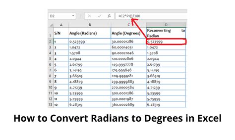 How to Convert Angles From Degrees to Radians in Excel