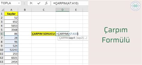 Web excel’de çarpma formülünü yapmak için üç farklı şekil bulunuyor. Web bu makalede, microsoft excel'de çarpim işlevinin formül sözdizimi ve kullanımı açıklanmaktadır. Bunlardan ilki olan sayıları hücrede. Web excel ile çarpma işlemi yapmak için gerekli formül çarpim formülüdür.
