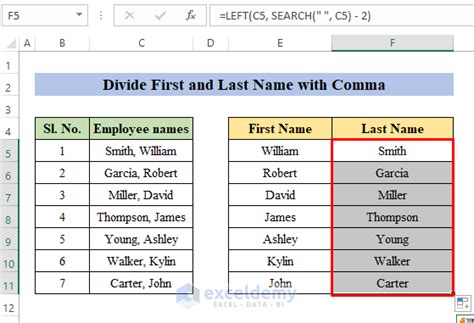 Web have you got a list of full names that need to be divided into first and last names in separate columns? These formulas cover the most typical scenario when you have the first name and last name in one column separated by a single space. The len function gets the total character count from the full name. We'll show you how to perform. Web get the last name. To split first and last name, you can use excel functions. Web in this article, i am going to describe 3 simple methods to separate first and last name with space using excel formulas. Suppose we have a dataset of some full employee names. Web how to split first and last name from full name with space. You can use the left function, right function with the find function to separate first name.