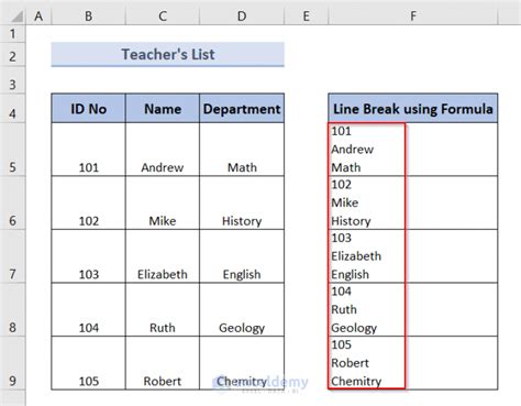 =upper ($b$8)& & proper ($c$8) & & & char (10) & upper ($b$9) & & proper ($c$9) and enable text wrapping in the cell with the formula: Web 2 answers sorted by: Start new line in cell with formula followed by wrapping text. On windows, hold alt while. If the text is already in the cell, place the cursor where you want to break the line. Also, if you plan on adding multiple lines to your. Web to add a line break with a formula, you can use the char function. Web to add a new line to your formula in excel, use the key combination of alt+enter. =textjoin(char(10),1,b5:d5) this formula uses the textjoin function to add line. This key combination will add a new line to your formula in excel. Let’s say, we have some student’s information like id, name of the.