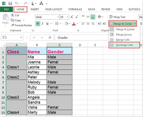 Web how to unmerge cells in excel. Select one or more cells you want to unmerge. Web how to unmerge cells in excel. Unmerging cells in excel is easy. If you need to reverse a cell merge, click onto the merged cell and then choose unmerge cells item in the merge & center menu (see the figure above). Type ‘= 🔼’ then hold ‘ctrl+enter’ do not click anywhere, leave the cells highlighted as they are and type ‘= uparrow’ and then press ctrl and enter at. On the home tab, in the. Web this method allows you to selectively unmerge cells while keeping some merged cells intact. Web with the unmerge cell utility of kutools for excel, you can unmerge cells and fill with duplicate data with one click, this method is very simple and handy. Unmerge cells and fill the blank cells with the original value.