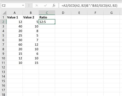 Web using gcd function using substitute & text functions number 1 as denomination taking a small example, if you were to calculate the ratio of the numbers 60 and 120, it would be 1:2. Web to generate the ratio of two numbers to each other (e.g. But we can create formulas to calculate ratios using other helpful excel functions. Web how to calculate a ratio in excel written by editorial team reviewed by steve rynearson last updated on february 9, 2021 this tutorial will show you how to compare two numbers and calculate their. Web =gcd (a2,b2) enter this formula in cell c2 and copy it for the entire column to get the gcd value for the entire data set. In excel, there is no direct function for calculating the ratio. In the generic form of the formula (above) num1 represents the first. Once i have the gcd value, i can calculate the ratio by using the below formula:. Web using gcd function using substitute & text functions number 1 as denomination taking a small example, if you were to calculate the ratio of the numbers 60 and 120, it would be 1:2. 4:3, 16:9, etc.), you can do using division, the gcd function, and concatenation.