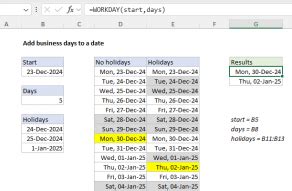 =networkdays(d3,e3,$d$11:$d$22) between the dates in d3 and e3 the computation of the working days needs to. Web you’ll have to apply the following formula: =networkdays(d3,e3,$d$11:$d$22) between the dates in d3 and e3 the computation of the working days needs to. A date that represents the start date. Web you can use the workday function to add a specific number of working days to a particular date in excel. Adding weekdays to a date. This function uses the following basic syntax: Workday (start_date, days, [holidays]) the workday function syntax has the following arguments: Web if you need to add or subtract business days (workdays) to a date so that you can calculate a date in the future or past that skips weekends (and holidays), you can use the workday function.