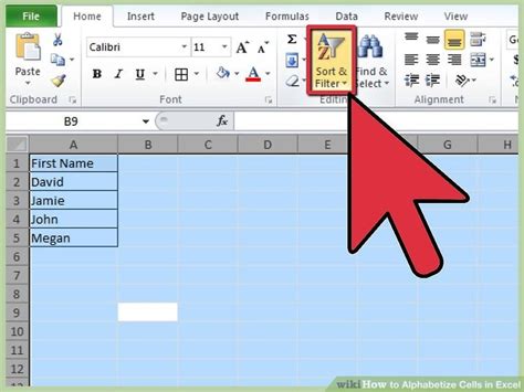 How to alphabetize data in an Excel spreadsheet by column or row, and