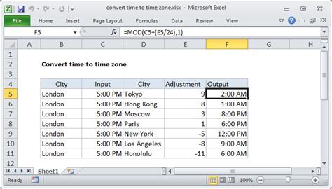 Web syntaxt and arguments time: Web follow these simple steps to convert time zones into excel. Web this tutorial will demonstrate how to convert a time from one time zone to another time zone. Web syntaxt and arguments time: The time difference between the old time zone and the new time zone. To convert time values provided in one time zones to another time zone, you can use the following two. At first, move to cell d5 and put the now it will be the current time as input. In the example shown, the formula. Return value it returns a decimal value, then you. Web to convert a time from one time zone to another, you can use a formula that converts hours entered as whole numbers to the decimal values that excel recognizes as times. The time you want to convert to time in another time zone.