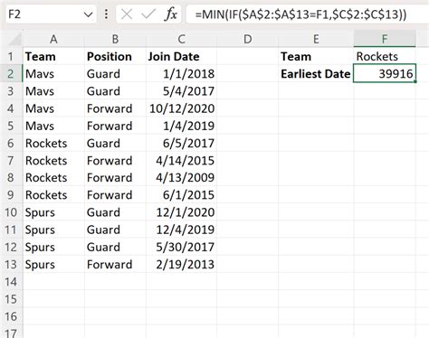 =min (if ($a$2:$a$16=office tab,$b$2:$b$16)) into a blank cell where you want to get the. Find earliest date based on one criteria.