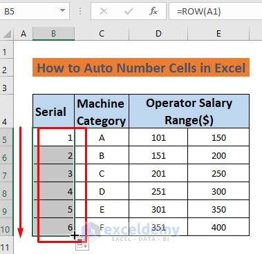 How To Number Cells In Excel. 2) drag the handle on the outline (you can also see the tooltip with the last number in the series) 3) release. The row function returns the number of the row.