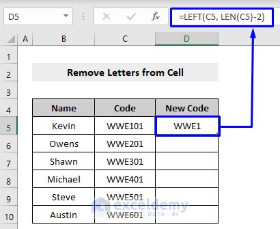 How To Remove A Letter From A Cell In Excel. Web generic substitute formula, =substitute (cell, old_text, new_text) here, old_text = the text you want to remove. Go to home tab>> editing dropdown>> find & select dropdown>> find option.