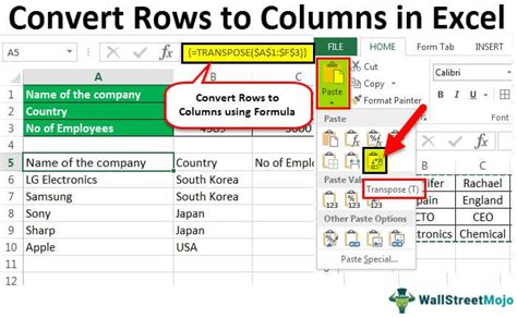 How to use the TRANSPOSE function to turn columns into rows or turn