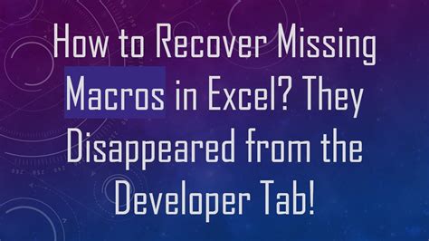 Macros Disappeared In Excel. Web there are two possible things going on here; 1) when the file is opened and 2) when the file is closed.
